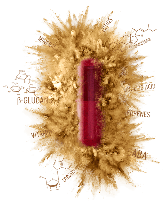 Los hongos contienen biomoléculas activas como son los beta-glucanos, el ergosterol, GABA, ácido linoléico, hericenonas, etc.