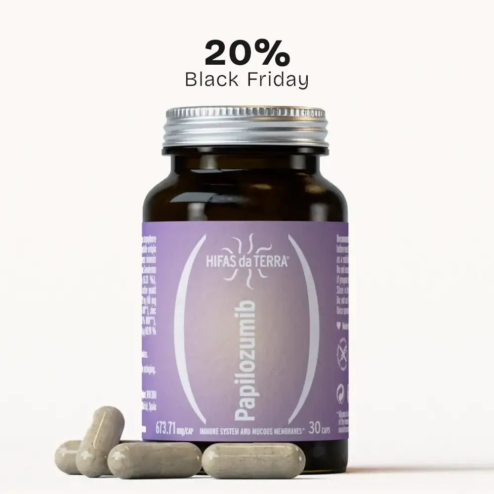 Papilozumib es un suplemento natural en cápsulas para actuar sobre el sistema inmune, las mucosas que nos protegen y la microbiota. Incluye los hongos utilizados en la medicina oriental de tipo adaptógeno y con contenido prebiótico (Reishi, Melena de león y Cordyceps). Entre estos destaca el Reishi, hongo similar al Coriolus versicolor, tradicionalmente utilizado como adaptógeno y estimulador de las defensas naturales del organismo*.