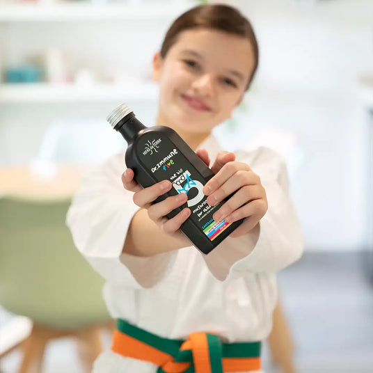 Dr. Immune Five contains beta-glucans that contribute to immune activity*. It also contains prebiotics and vitamins D and C that contribute to the normal functioning of the immune system. This is a liquid food supplement for children made with pure extract of the 5 great mushrooms: Reishi, Sun Mushroom, Pleurotus, Chaga and Shiitake.