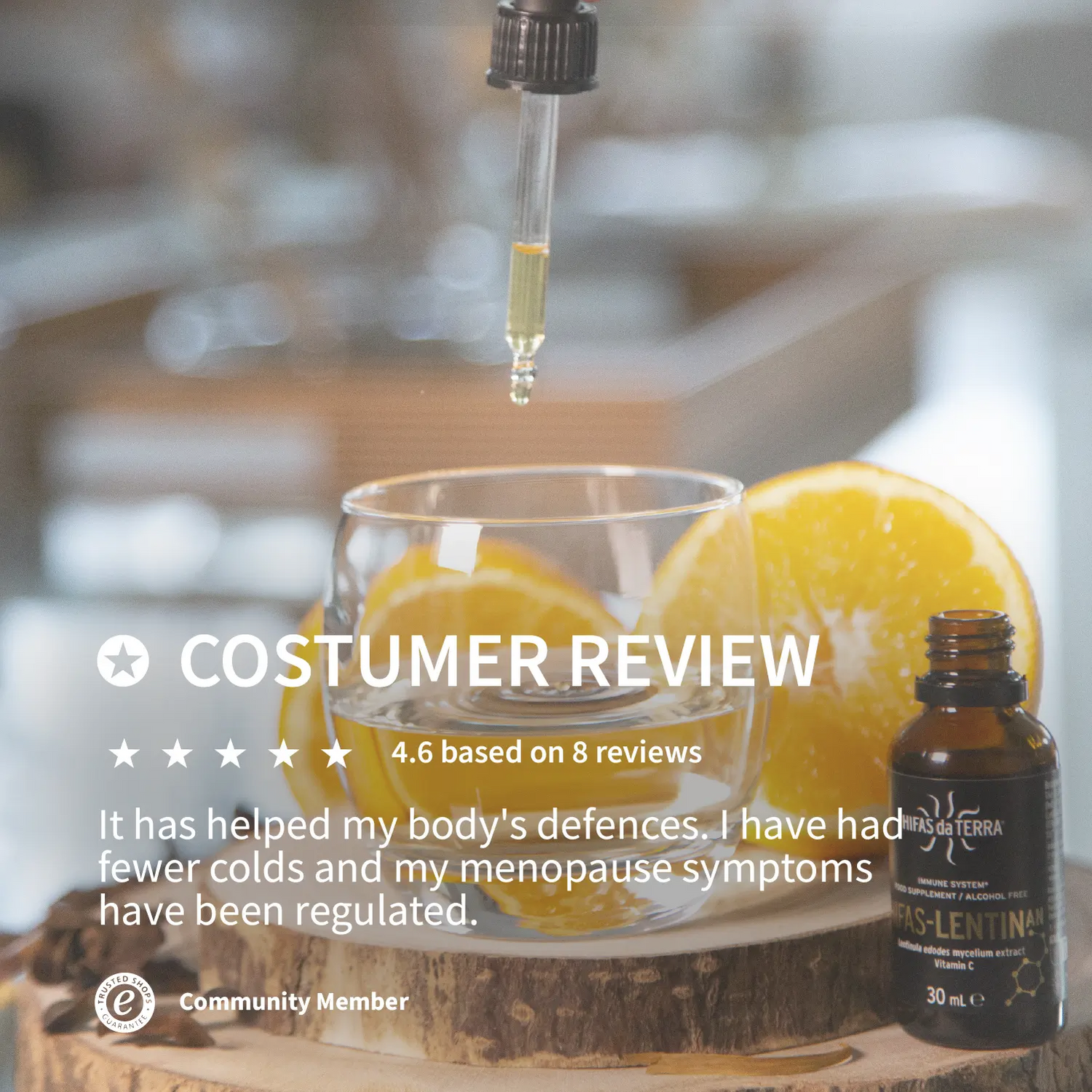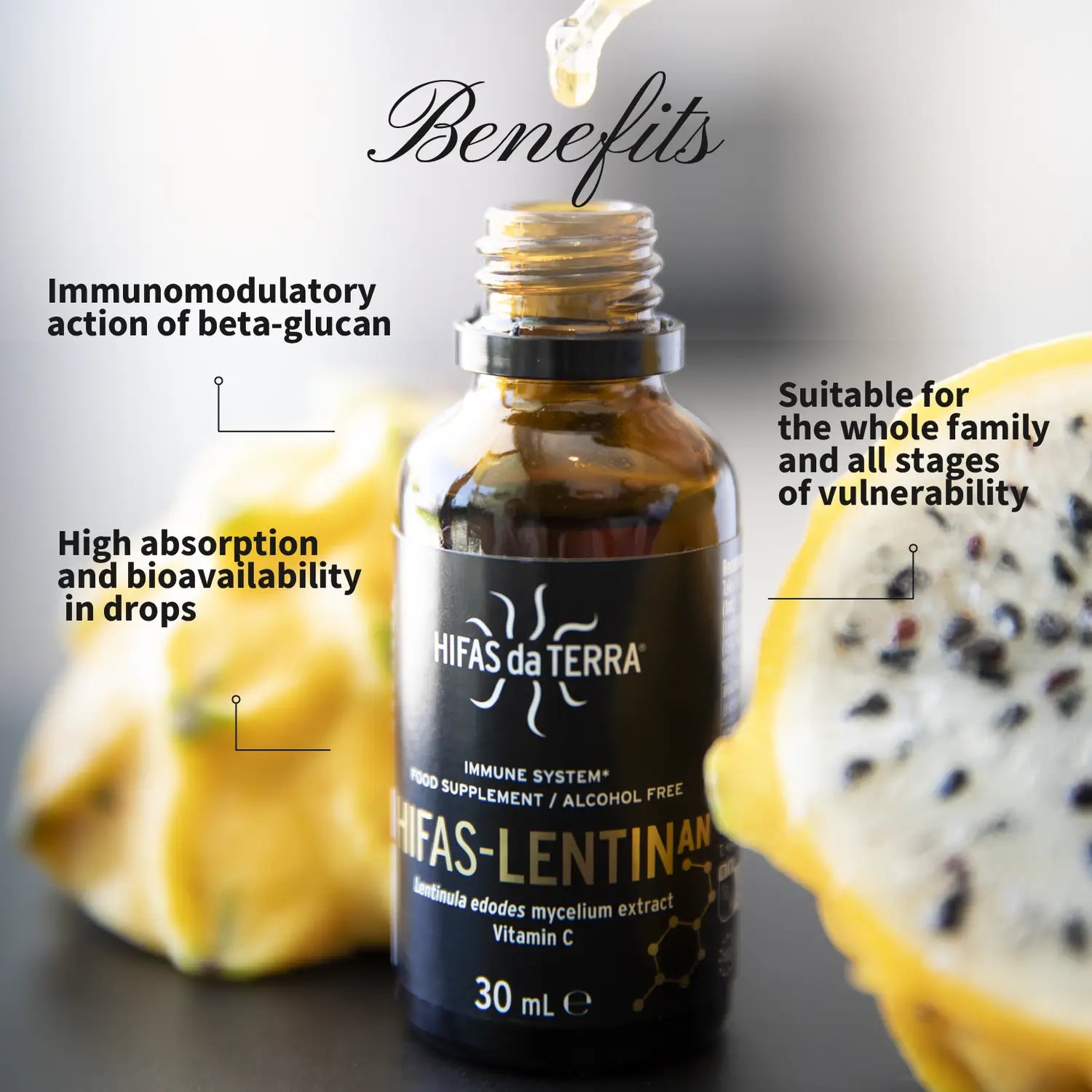 HIFAS-Lentinan Gotas es un suplemento líquido a base de Lentizumib®, betaglucano activo, concentrado y potente obtenido de Shiitake (Lentinula edodes).FORMATO LÍQUIDO DE FÁCIL INGESTA. Libre de alcohol.